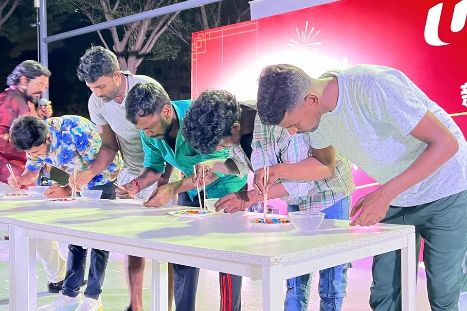 சிங்க நடனம், முகமூடி மாற்றும் மாய வித்தைகள், சீன, தமிழ், ஆங்கில, பங்ளாதேஷ் பாடல்கள், விளையாட்டுகள் எனப் பல சுவாரசியமான அங்கங்கள் வெளிநாட்டு ஊழியர்களை மகிழ்வித்தன.