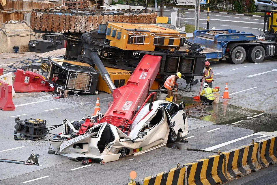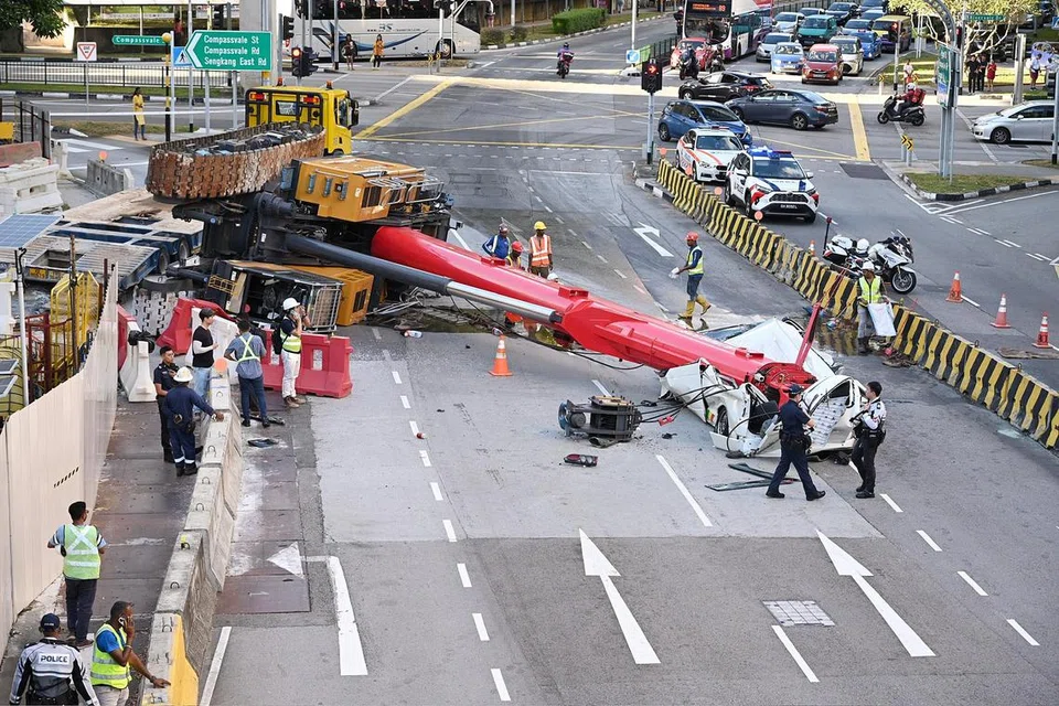 செங்காங் வட்டாரத்தில் கட்டுமானப் பணிகளுக்காகப் பயன்படுத்தப்பட்ட பாரந்தூக்கி ஒன்று விழுந்ததில் அவ்வழியாகச் சென்றுகொண்டிருந்த வேன் நொறுங்கியது.