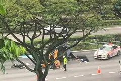வெள்ளை நிற டொயோட்டா கார் ஒன்று குப்புறச் சாய்ந்து கிடப்பதையும் சிறு சேதத்துடன் இருந்த மற்றொரு நீலநிறக் காரையும் விபத்துக்குப் பின்னர் எடுக்கப்பட்ட புகைப்படங்கள் காட்டின.
