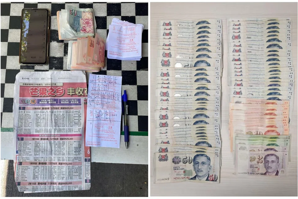 இதில், ரொக்கப் பணம் $60,000க்கும் மேல், கைப்பேசிகள், குதிரைப் பந்தய சூதாட்டத்துக்கு உதவும் பொருள்கள் ஆகியவை பறிமுதல் செய்யப்பட்டன.