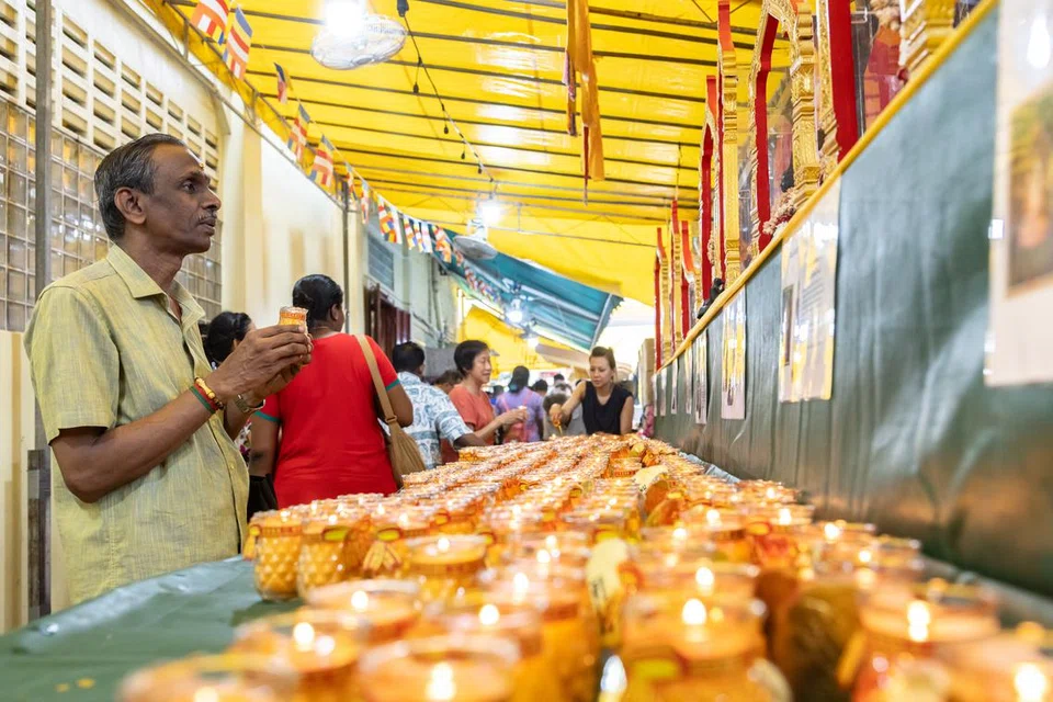 சிங்கப்பூரில் வாழும் பெளத்த சமயத்தவர்கள் பௌத்த ஆலயத்துக்குச் சென்றும் நன்கொடைகள் வழங்கியும் புதன்கிழமை விசாக தினத்தைக் கொண்டாடினர்.