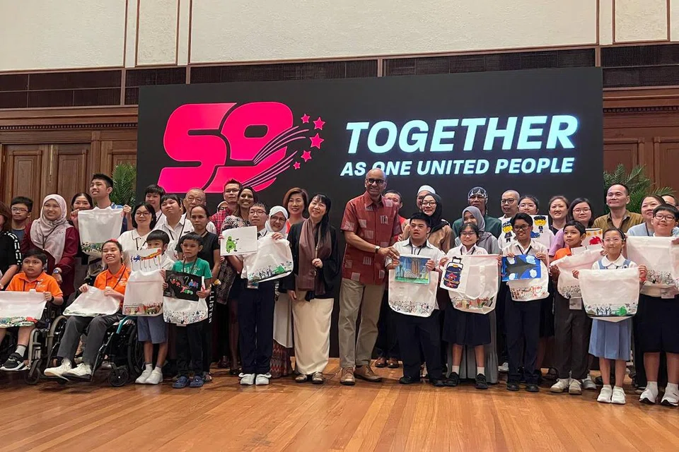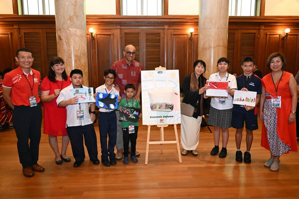 தேசிய தினத் தொகுப்புக்காக, முழுமைத் தற்காப்பின் ஆறு தூண்களை உணர்த்தும் கலைப்படைப்புகளை உருவாக்கிய சிறப்புத் தேவைகளுடைய கலைஞர்கள், அவர்களது குடும்பத்தினர் பராமரிப்பாளர்களுடன் கலந்துரையாடினார் அதிபர் தர்மன் சண்முகரத்னம்.