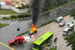 மலேசியச் சோதனைச்சாவடியிலிருந்து சிங்கப்பூருக்கு வெளியேறும் தடத்தில் இருந்தபோது அந்த காரில் தீ மூண்டதாகத் தெரிவிக்கப்பட்டது.