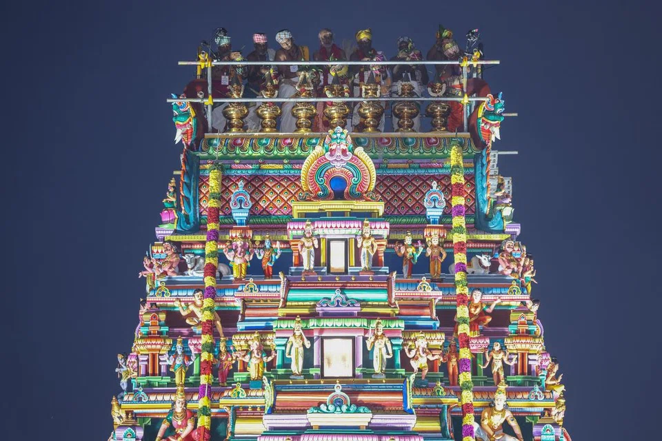 சிவந்த வானத்தில் சூரிய உதயம் ஒருபுறம், வண்ணமயமாக ஒளிரும் ராஜகோபுரம் ஒருபுறம், ‘ஓம் நமசிவாய’ முழக்கம் எழுப்பும் மக்கள் வெள்ளம் ஒருபுறம் என சிலிர்ப்பான காட்சிகளுடன் நடந்தேறியது காமன்வெல்த் டிரைவ் ஸ்ரீ முனீஸ்வரன் ஆலயத்தின் குடமுழுக்கு விழா.