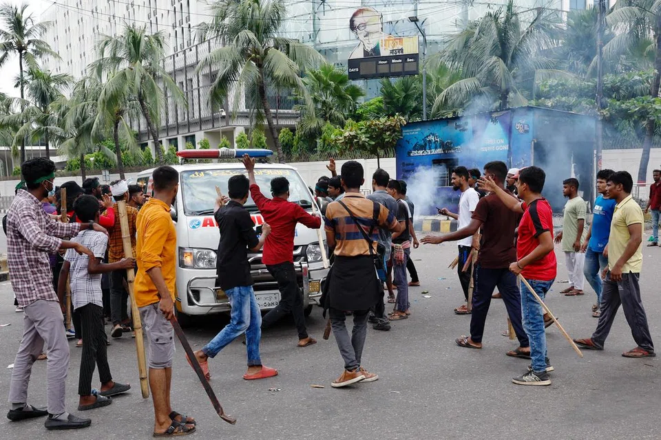 பிரதமர் ஷேக் ஹசினா பதவி விலகக் கோரி ஞாயிற்றுக்கிழமை (ஆகஸ்ட் 4) நடைபெற்ற போராட்டத்தில் ஆயிரக்கணக்கான இளையர்கள் ஒன்றுதிரண்டனர்.