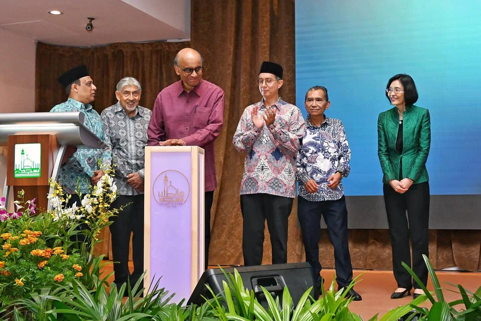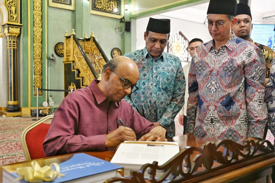 பள்ளிவாசலின் உள்ளரங்கில் திங்கட்கிழமை (ஜூலை 21) நடைபெற்ற நூல் வெளியீட்டு நிகழ்ச்சியில் சிறப்பு விருந்தினராக அதிபர் தர்மன் சண்முகரத்னம் கலந்துகொண்டார்.