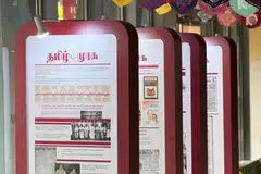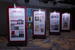 அச்சு கோக்கப்பட்ட அந்தக் காலம் முதல் முழுவண்ணப் பக்கங்கள் அச்சிடப்படும் இந்தக் காலம் வரை பத்திரிகையின் பரிணாமத்தைப் பதாகைகள் காண்பிக்கின்றன.