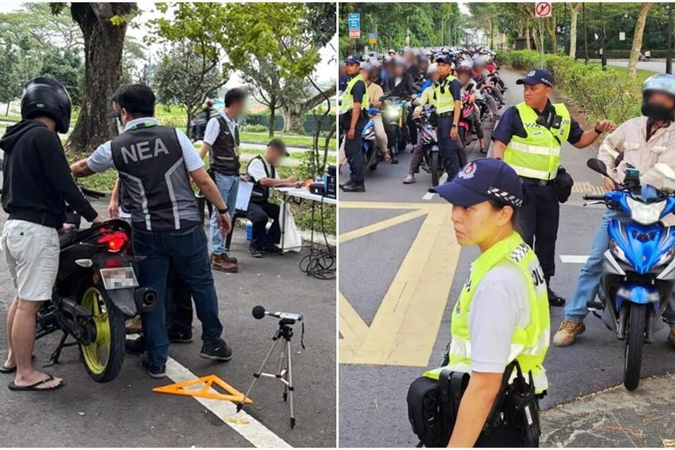 கடந்த மார்ச் 31ஆம் தேதி உட்லண்ட்ஸ் வட்டாரத்தின் அட்மிரல்டி வெஸ்ட் சாலையில் போக்குவரத்துக் காவல்துறை, தேசியச் சுற்றுப்புற வாரியம், நிலப் போக்குவரத்து ஆணையம் ஆகியவை இணைந்து, விதிமீறும் மோட்டார்சைக்கிளோட்டிகளுக்கு எதிராக அமலாக்க நடவடிக்கைகளை மேற்கொண்டன.