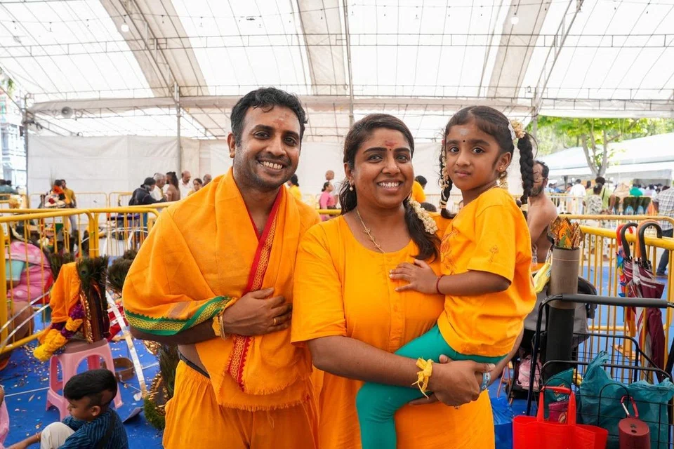 “என் தாயார் நான் நான்கு வயதாக இருக்கும்போது காவடி எடுக்கச் சொன்னார். அப்போது இனம்புரியாத உணர்வோடு எடுக்கத் தொடங்கினேன். இப்போது முருகனைக் காணும் மகிழ்ச்சியுடன் எடுக்கிறேன்,” என்றார் ஹவ்காங் குடியிருப்பாளர் முரளிதரன், 43.