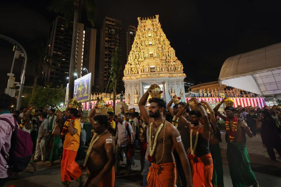 தைப்பூசத்தை முன்னிட்டுத் தங்கள் நேர்த்திக்கடனை நிறைவேற்ற மங்கலகரமான மஞ்சள் உடைகளில் பக்தி மிளிரத் தங்கள் குடும்பத்தினரோடு திரண்டுள்ளனர் பக்தர்கள்.  - படம்: த.கவி