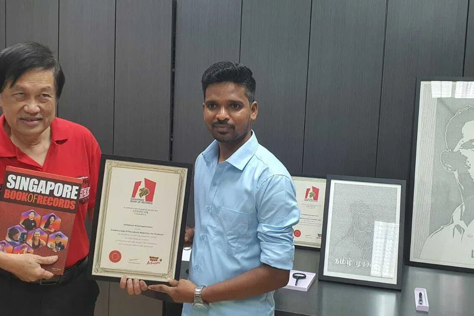 லிஷா எனப்படும் லிட்டில் இந்தியா வர்த்தகர், மரபுடைமைச் சங்க அலுவலகத்தில் செவ்வாய்க்கிழமை (டிசம்பர் 23) மாலை தமிழரசனுக்கு அந்தச் சாதனைக்கான சான்றிதழ் வழங்கப்பட்டது.