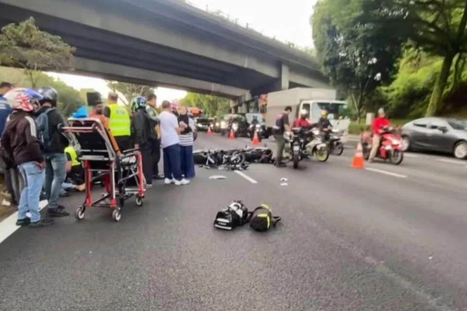 On Sunday, January 24th, an accident on the Bukit Timah Expressway (BKE) towards Woodlands involving three motorcyclists and a car resulted in hospitalizations. Two motorcyclists, aged 27 and 30, were sent to the Infirmary conscious, while a 28-year-old was hospitalized unconscious. A 61-year-old car driver is assisting with police investigations. The accident, which occurred around 7:20 am, led to lane closures on Exit 8, causing traffic congestion. All lanes were reopened around 12:25 pm.