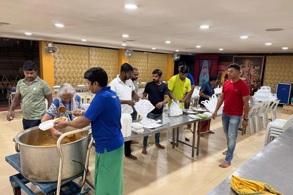 தோ பாயோவில் செவ்வாய்க்கிழமை (ஜூலை 29) தீ விபத்து நேர்ந்ததற்கு மறுநாள் காலையில் ஸ்ரீ வைராவிமட காளியம்மன் கோயிலைச் சேர்ந்த தொண்டூழியர்களும் ஊழியர்களும் ஒன்றுதிரண்டு, உணவு சமைத்து விநியோகம் செய்தனர்.