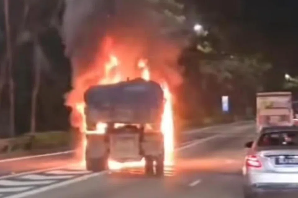 துவாசை நோக்கிச் செல்லும் சாலையில் லாரி தீப்பிடித்து எரிவதாக இரவு 7.45 மணியளவில் தனக்குத் தகவல் கிடைத்ததாக சிங்கப்பூர் குடிமைத் தற்காப்புப் படை (எஸ்சிடிஎஃப்) கூறியது.