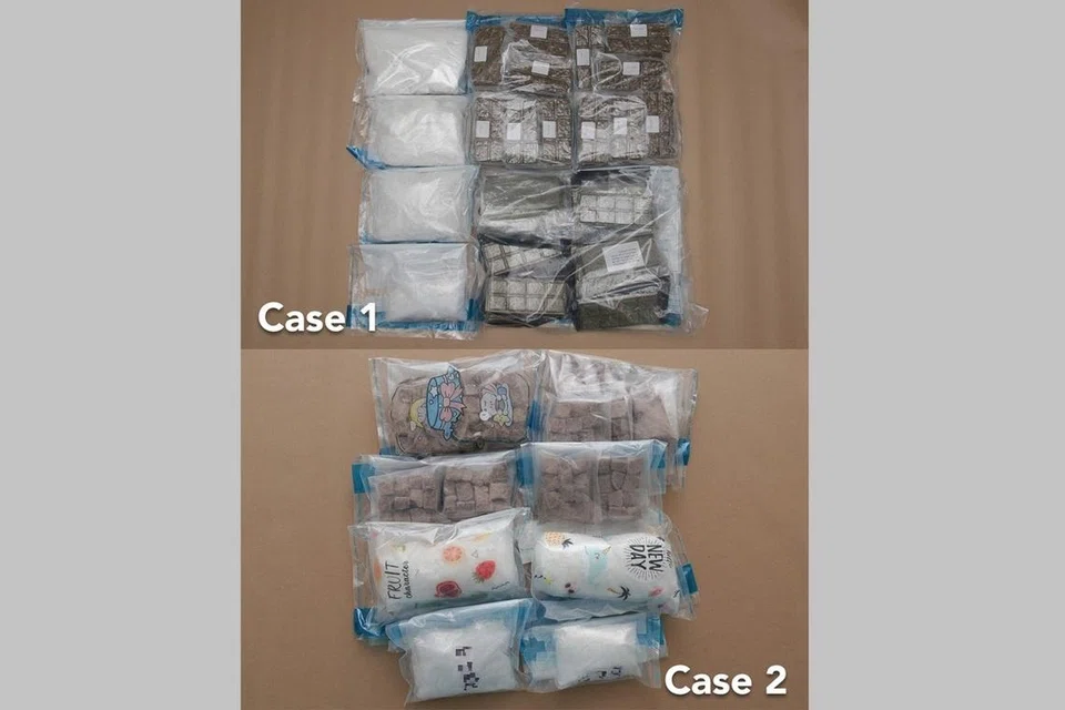 மேலும் சோதனையிட்டபோது, 3,272 கிராம் கஞ்சாவும் 1,709 கிராம் ஐஸ் போதைப்பொருளும் அடங்கிய ஏழு பொட்டலங்கள் கண்டுபிடிக்கப்பட்டன.