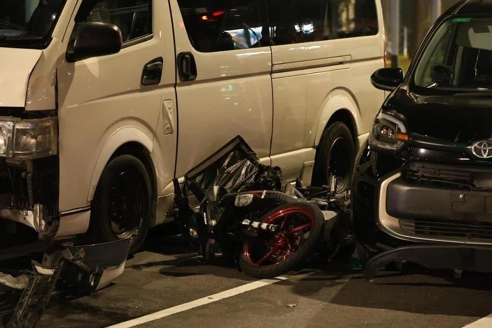 திங்கட்கிழமை (மார்ச் 9) இரவு 10.45 மணியளவில் வேன், கார், மோட்டார்சைக்கிள் ஆகியவை சம்பந்தப்பட்ட விபத்து குறித்து தங்களுக்குத் தகவல் கிடைத்ததாகக் காவல்துறை தெரிவித்தது.