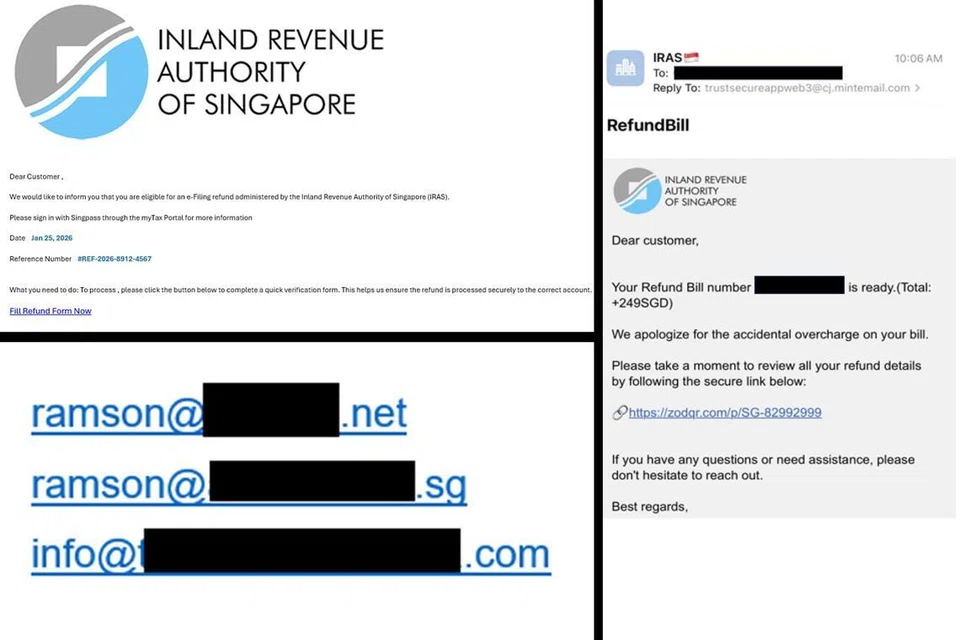 அத்தகைய மின்னஞ்சலைப் புறக்கணிக்கும்படி சிங்கப்பூர் உள்நாட்டு வருவாய் ஆணையம் கூறியது.