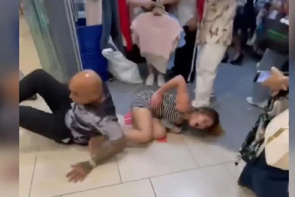 பெண் தரையில் கிடந்தபோது அந்த ஆடவர் மீண்டும் அவரை உதைக்க முயன்றதாகக் கூறப்படுகிறது. - படம்: SYMPATHY8712/REDDIT