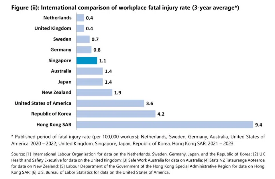 கொவிட்-19 பெருந்தொற்று பரவிய 2020ஆம் ஆண்டைத் தவிர்த்து, சென்ற ஆண்டு வேலையிட மரண விகிதம் சிங்கப்பூர் வரலாற்றிலேயே ஆகக் குறைவாக, 100,000 ஊழியர்களுக்கு 0.99 (மொத்தம் 36 மரணங்கள்) என இருந்தது.