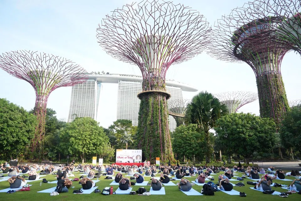 கரையோரப் பூந்தோட்டத்துடன் இணைந்து சிங்கப்பூர் இந்தியத் தூதரகம், யோகா தினக் கொண்டாட்டத்திற்கு ஏற்பாடு செய்திருந்தது.