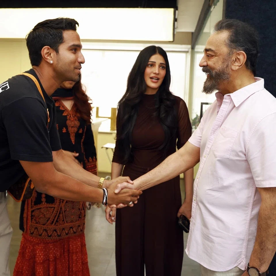 காரணம், அன்று பிற்பகல் வேளையில் தமது தோழி ஷ்ருதி ஹாசனைச் சந்திக்கச் சென்ற யங் ராஜா, உலக நாயகன் கமல்ஹாசனைப் பார்த்து அவருடன் உரையாடும் வாய்ப்பைப் பெற்றார்.
