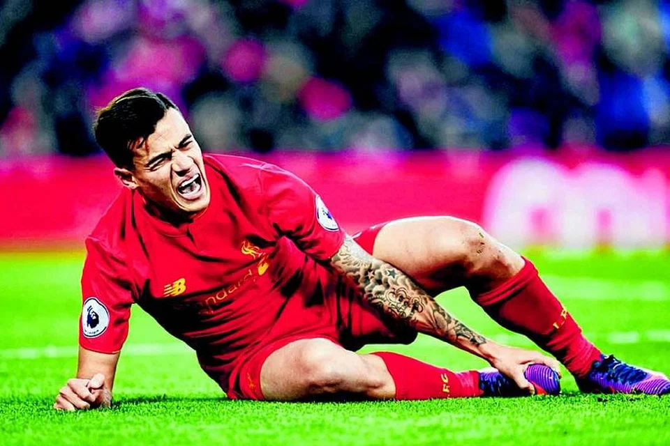 அண்மையில் சண்டர்லேண்ட் குழுவுக்கு எதிராக நடைபெற்ற ஆட்டத்தில் லிவர்பூலின் நட்சத்திர வீரர்களில் ஒருவரான ஃபிலிப் கோட்டின்யோ (வலது) காயமடைந்தார். இதன் விளைவாக அவர் ஸ்டோக் சிட்டிக்கு எதிராக இன்றைய ஆட்டத்தில் விளையாடமாட்டார் என அறிவிக்கப்பட்டுள்ளது. படம்: ஏஎஃப்பி
