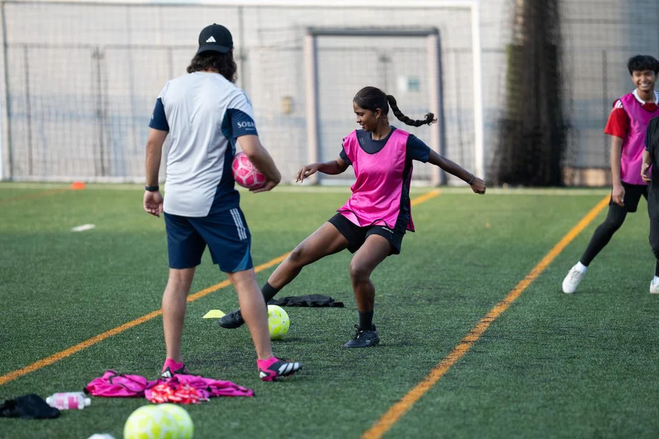 முதன்முதலில் காற்பந்து விளையாடக் கற்றுக்கொண்ட சக்தி பிரியா, 18. - படம்: என்டியுசி கிளப்