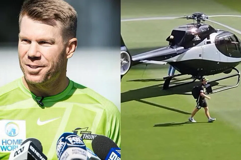 சிட்னி: ஆஸ்திரேலிய கிரிக்கெட் அணியின் அதிரடித் தொடக்க ஆட்டக்காரர் டேவிட் வார்னர் ஹெலிகாப்டர் மூலம் சிட்னி விளையாட்டரங்கத் திடலில் தரையிறங்கினார்.