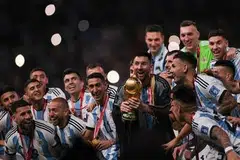 வெற்றிக் கிண்ணத்தைப் பெற மேடைக்கு வந்த லயனல் மெஸ்ஸிக்கு 'பிஸ்த்' எனும் தனிச்சிறப்பு வாய்ந்த அங்கி அணிவிக்கப்பட்டது.