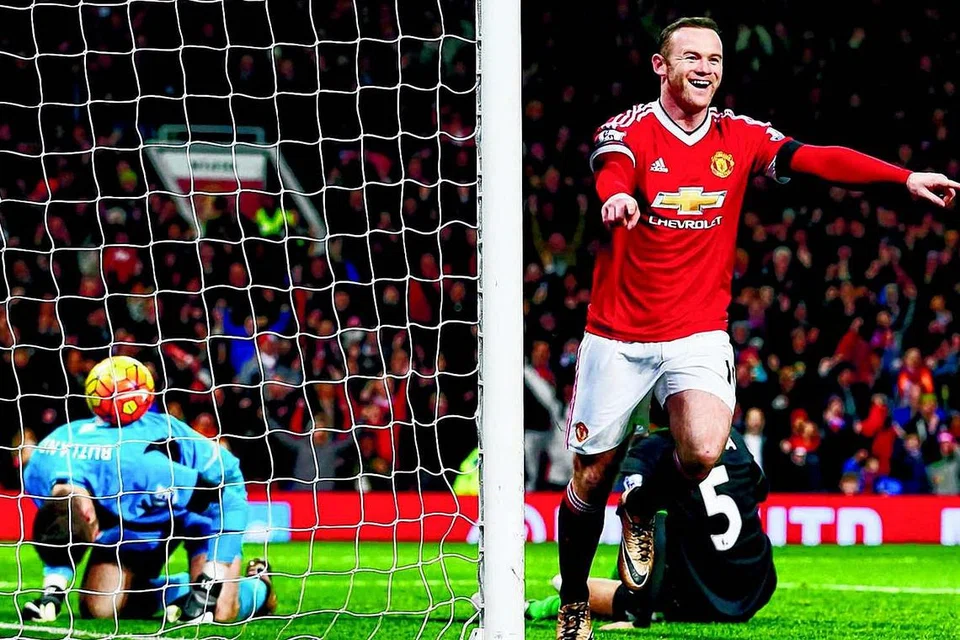 ஸ்டோக் சிட்டிக்கு எதிராக கோலடித்த மகிழ்ச்சியில் மேன்யூ ஆட்டக்காரர் வெய்ன் ரூனி. படம்: ராய்ட்டர்ஸ்