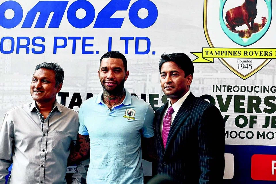 தெம்பனிஸ் ரோவர்ஸ் குழுவைப் புதிய சிகரத்துக்குக் கொண்டு செல்ல முனைப்புடன் காத்துக்கொண்டிருக்கும் அதன் (இடமிருந்து வலம்) பயிற்றுவிப்பாளர் வி. சுந்தரமூர்த்தி, நட்சத்திர வீரர் ஜெர்மேன் பென்னண்ட், தலைவர் கிருஷ்ணா ராமச்சந்திரா. படம்: ஏஎஃப்பி