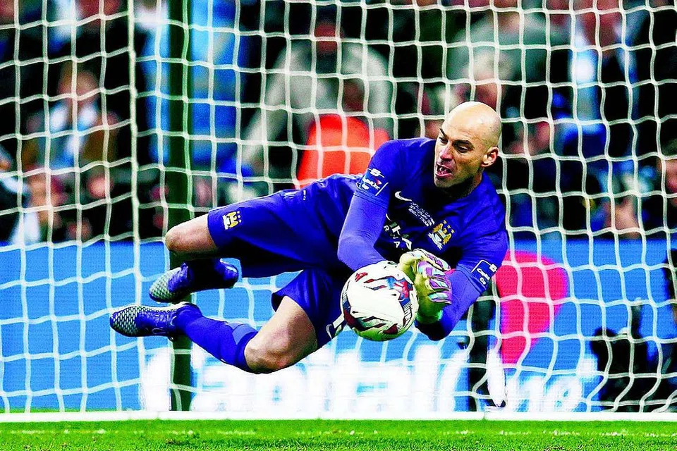 லிவர்பூல் ஆட்டக்காரர்களின் பெனால்டிகளைத் தடுத்து நிறுத்தி அக்குழுவின் லீக் கிண்ண கனவைக் கலைத்த சிட்டி கோல்காப்பாளர் வில்லி கபல்லேரோ மூன்று பெனால்டிகளை முறியடித்த கபல்லேரோ சிட்டி கிண்ணம் வெல்வதற்கு முக்கிய காரணமாக இருந்தார். படம்: ராய்ட்டர்ஸ்