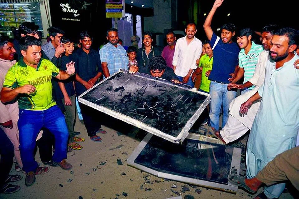 இந்தியாவிடம் பாகிஸ்தான் தோற்றதால் அந்நாட்டு ரசிகர்கள் ஆத்திரம் அடைந்தனர். கராச்சியில் கிரிக்கெட் ரசிகர்கள் தொலைக்காட்சிப் பெட்டியை உடைத்தனர். படம்: ஏஎஃப்பி