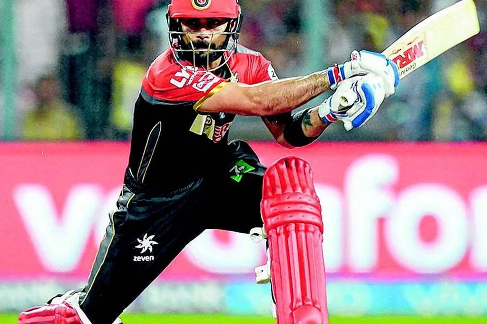 கோல்கத்தா நைட் ரைடர்ஸ் அணிக்கு எதிரான ஆட்டத்தில் பந்தை விளாசும் விராத் கோஹ்லி. படம்: ஏஎஃபி