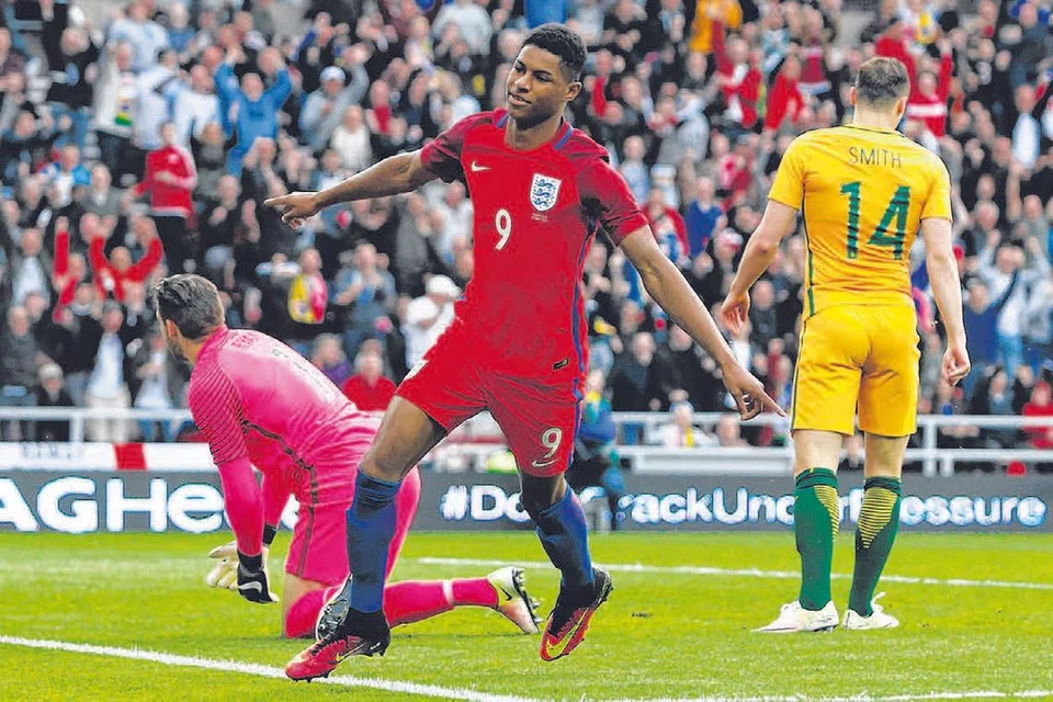 இங்கிலாந்து, ஆஸ்திரேலியாவுக்கு இடையிலான நட்புமுறை காற்பந்து ஆட்டமொன்றில் மான்செஸ்டர் யுனைடெட்டின் இளம் தாக்குதல் ஆட்டக்காரர் மார்க்கஸ் ரேஷ்ஃபர்ட் ஆட்டம் தொடங்கிய 3ஆம் நிமிடத்திலேயே இங்கிலாந்துக் கான முதல் கோலை போட்டு இங்கிலாந்து நிர்வாகியான ரோய் ஹாட்சனின் புகழாரத்தைப் பெற் றுள்ளார்.
