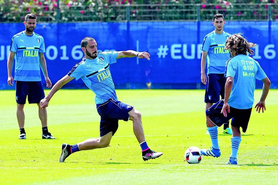 வெற்றிப் பயணத்தைத் தொடரவேண்டும் என்ற வேட்கையுடன் ஜெர்மனிக்கு எதிரான காலிறுதி ஆட்டத்துக்கு முன்பு தீவிர பயிற்சியில் ஈடுபடும் இத்தாலி வீரர்கள். படம்: ராய்ட்டர்ஸ்