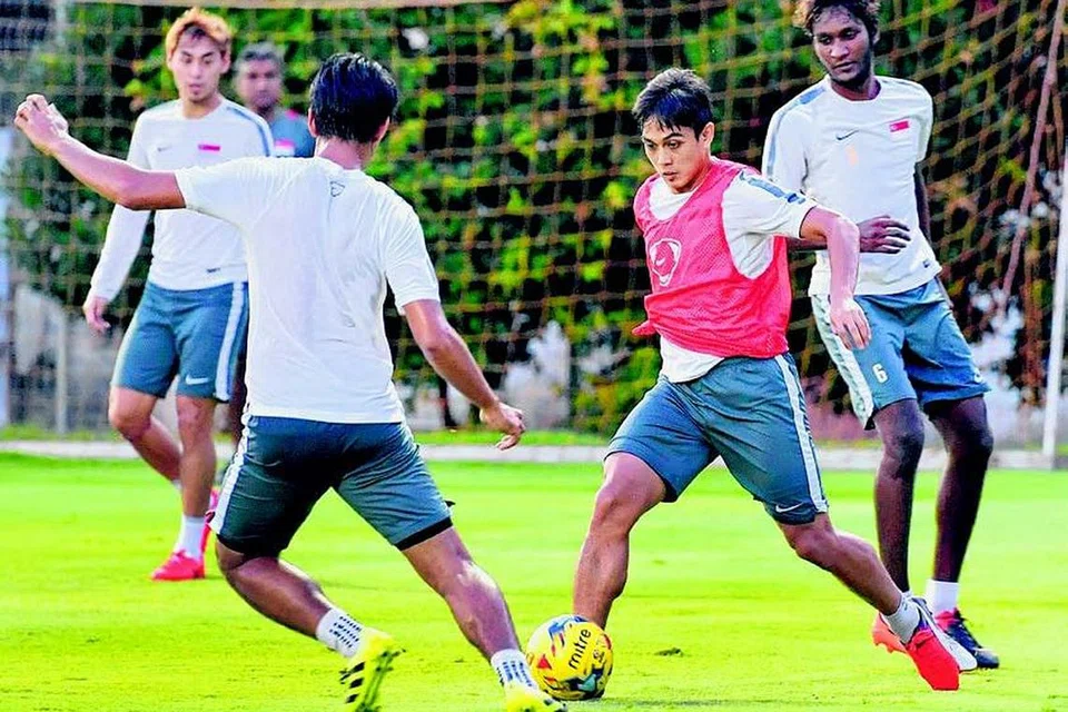 நேற்று முன் தினம் பயிற்சியின்போது சிங்கப்பூர் ஆட்டக்காரகள். படம்: ஸ்ட்ரெய்ட்ஸ் டைம்ஸ்