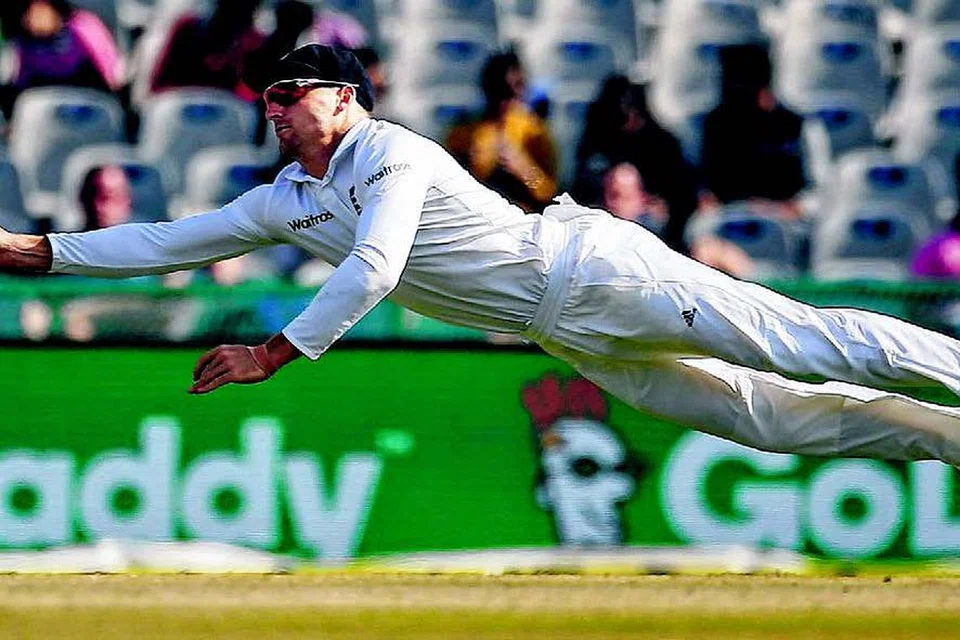 இந்திய வீரர் அடித்த பந்தைப் பிடிக்கப் பாயும் இங்கிலாந்தின் ஜோஸ் பட்லர். படம்: ராய்ட்டர்ஸ்