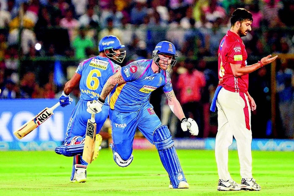 சக வீரருடன் இணைந்து ஓட்டங்களைக் குவிக்கும் ராஜஸ்தான் ராயல்ஸ் அணியின் பென் ஸ்டோக்ஸ் (நடுவில்). படம்: ஏஎஃப்பி
