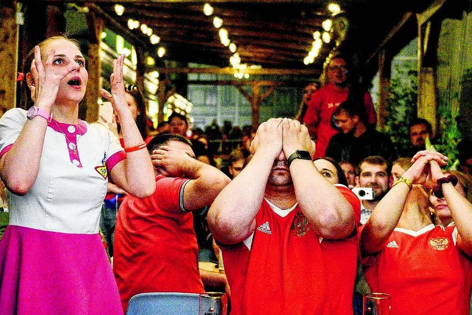 மாஸ்கோவில் உள்ள ஓர் உணவகத்தில் காலிறுதி ஆட்டத்தின் நேரடி ஒளிபரப்பைப் பார்த்த ரஷ்ய ரசிகர்கள் தங்கள் குழு பெனால்டி ஷூட்அவுட்டில் தோல்வியைத் தழுவி போட்டியிலிருந்து வெளியேறியதும் அதிர்ச்சியில் உறைந்து போனார்கள். படங்கள்: ஏஎஃப்பி, ராய்ட்டர்ஸ்