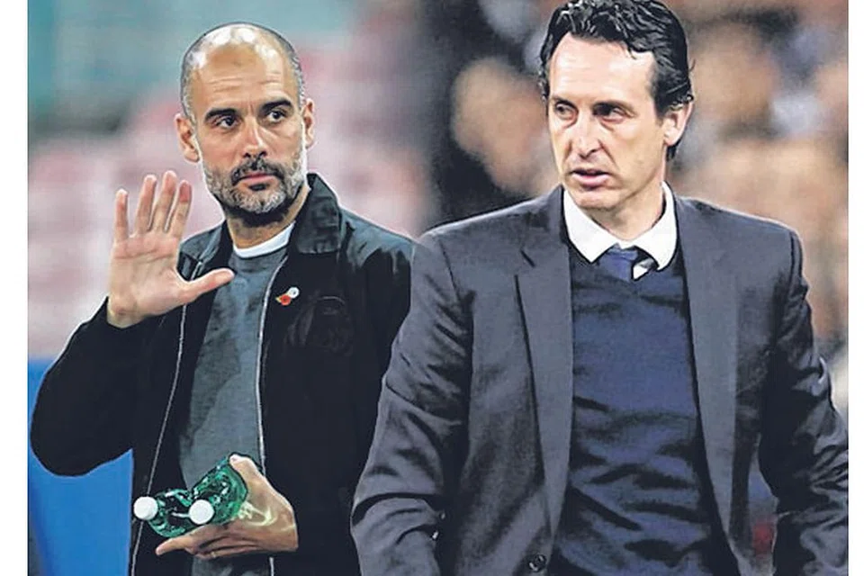 சிட்டி நிர்வாகி கார்டியோலாவும் ஆர்சனலின் புதிய நிர்வாகி உனை எம்ரியும். கோப்புப் படம்