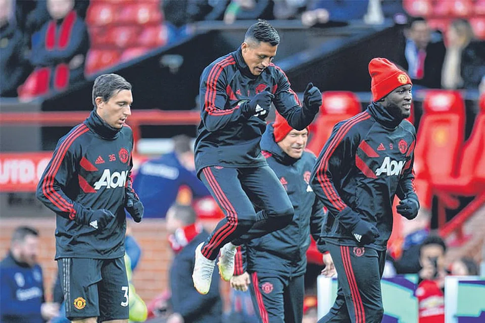 மான்செஸ்டர் யுனைடெட்டுக்காக மீண்டும் களமிறங்க அலெக்சிஸ் சான்செசும் (இடமிருந்து இரண்டாவது) ரொமேலு லுக்காகுவும் (வலது) முனைப்புடன் பயிற்சி செய்து வருகின்றனர். படம்: ராய்ட்டர்ஸ்