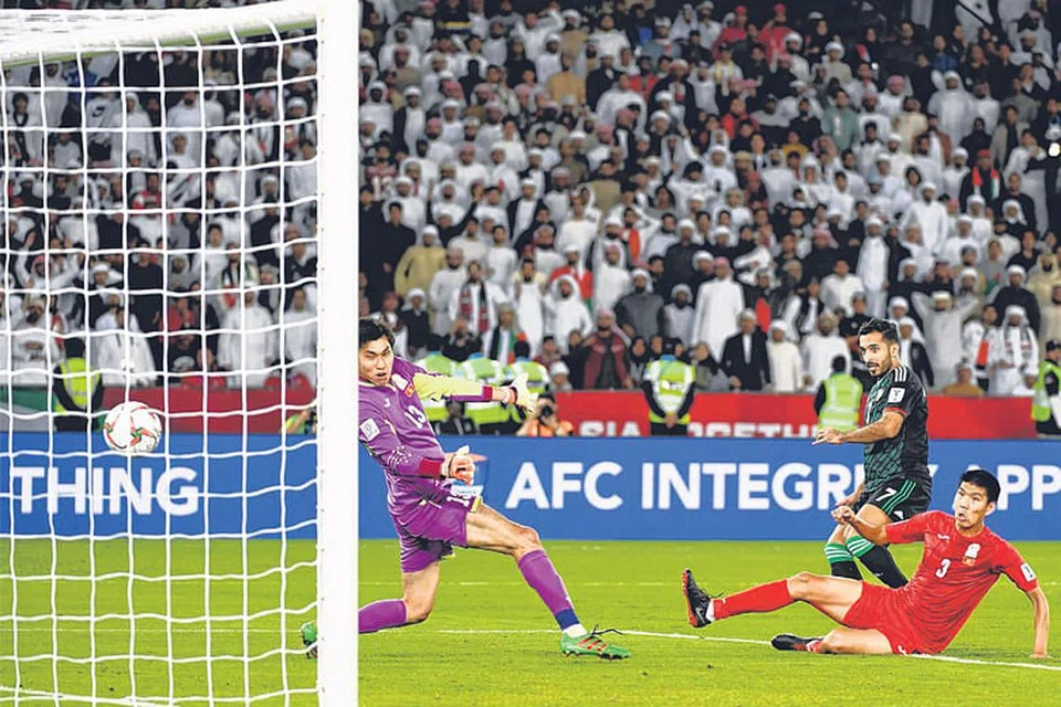 அபுதாபி: ஆசியக் கிண்ணக் காற்பந்துப் போட்டியை ஏற்று நடத்தும் ஐக்கிய அரபு சிற்றரகள் (யுஏஇ) காலிறுதிச் சுற்றுக்குத் தகுதி பெற்றுள்ளது. நேற்று முன்தினம் நடைபெற்ற ஆட்டத்தில் கிர்கிஸ்தான் குழுவை அது 3=2 எனும் கோல் கணக்கில் தோற்கடித்தது. ஆட்டம் 2=2 எனும் கோல் கணக்கில் சமநிலையில் இருந்த போது யுஏஇக்குக் கூடுதல் நேரத்தில் சர்ச்சைக்குரிய பெனால்டி வாய்ப்பு கிடைத்தது. அதை அக்குழுவின் அகமது கலில் கோலாக்கினார். அதுவே யுஏஇயின் வெற்றி கோலாக அமைந்தது. ஆனால் இந்த வெற்றியை அக்குழு போராடி பெற வேண்டி இருந்தது. கிர்கிஸ்தானை யுஏஇ எளிதில் வெல்லும் என்று எதிர்பார்க்கப் பட்டது. ஆனால் கிர்கிஸ்தான் விட்டுக் கொடுக்காமல் விளையாட, யுஏஇ வீரர்கள் திக்குமுக்காடினர். ஆட்டத்தின் 14வது நிமிடத்தில் கார்னர் வாய்ப்பு மூலம் வந்த பந்தைத் தலையால் முட்டி கோலாக்கினார் யுஏஇயின் கமிஸ் இஸ்மாயில். துவண்டுவிடாமல் விளையாடிய கிரிகிஸ்தான், சில நிமிடங்கள் கழித்து ஆட்டத்தைச் சமன் செய்தது. யுஏஇ கோல்காப்பாளரைக் கடந்து சென்ற மிர்லான் முர்சாயேவ் பந்தை வலைக்குள் சேர்த்தார்.