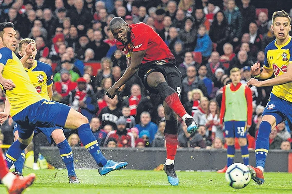மான்செஸ்டர் குழுவின் 2வது கோலை அடிக்கும் லுக்காகு (நடுவில்). படம்: ஏஎஃப்பி -