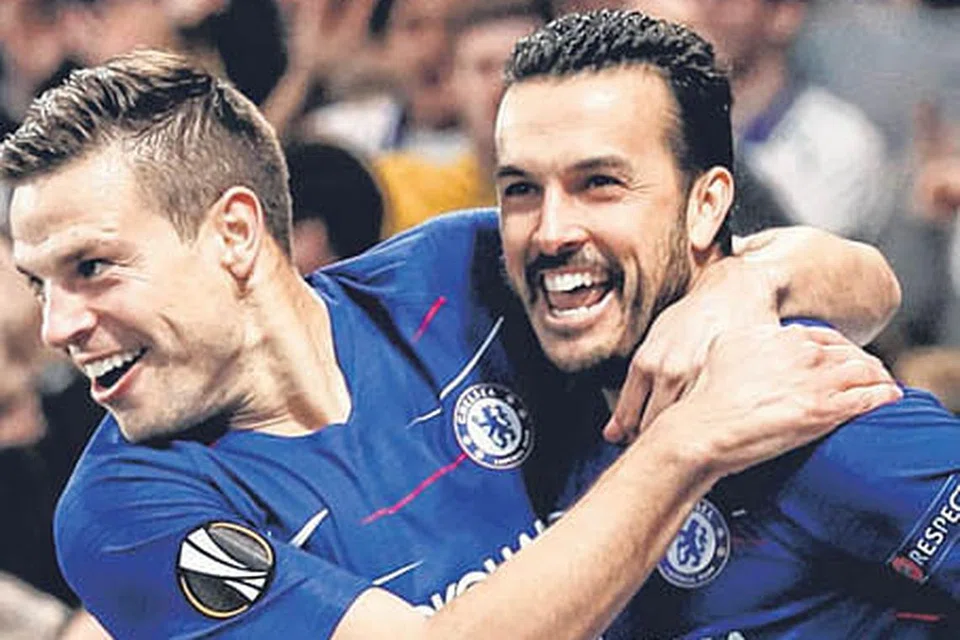 செக் குடியரசின் ஸ்லாவியா பிராக் குழுவிற்கு எதிரான யூரோப்பா லீக் காலிறுதி இரண்டாம் ஆட்டத்தில் முற்பாதியிலேயே செல்சி நான்கு கோல்களை அடித்தது. முதல் கோலை அடித்து செல்சியின் கோல் கணக்கைத் தொடங்கிவைத்த பெட்ரோவே (இடது) அக்குழுவின் கோல் வேட்டையையும் முடித்து வைத்தார். அவரைப் பாராட்டும் சக செல்சி ஆட்டக்காரர் செஸார் அஸ்பிலிகுவெட்டா. படம்: ராய்ட்டர்ஸ் -