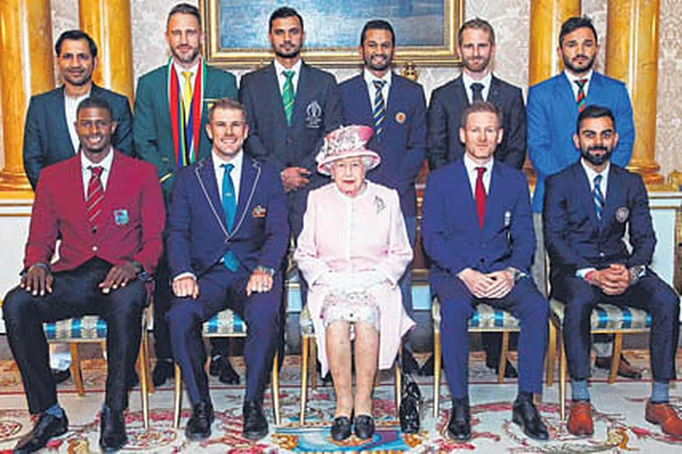 ஐசிசி ஒருநாள் கிரிக்கெட் போட்டி இங்கிலாந்தில் நேற்று தொடங்கியதை முன்னிட்டு அதில் பங்கெடுக்கும் 10 நாட்டு கிரிக்கெட் அணித் தலைவர்கள் லண்டனில் உள்ள பக்கிங்ஹம் அரண்மனையில் எலிசபெத் ராணியைச் சந்தித்தனர். அவர்கள் ராணியுடன் அளவளாவியதைத் தொடர்ந்து அவருடன் சேர்ந்து புகைப்படம் எடுத்துக்கொண்டனர். படம்: ஏஎஃப்பி