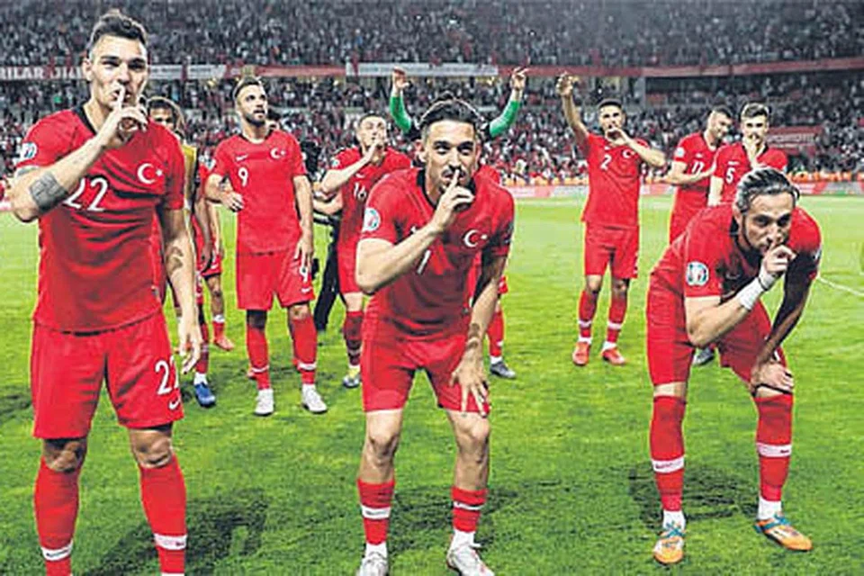 துருக்கியின் இஸ்தான்புல் நகரில் உலகக் கிண்ண வெற்றியாளர் பிரான்சுக்கு எதிரான நேற்றைய ஆட்டத்தின் இறுதியில் தங்களுக்கு கிடைத்த முக்கிய வெற்றியைக் கொண்டாடும் துருக்கிய ஆட்டக்காரர்கள். படம்: ஏஎஃப்பி