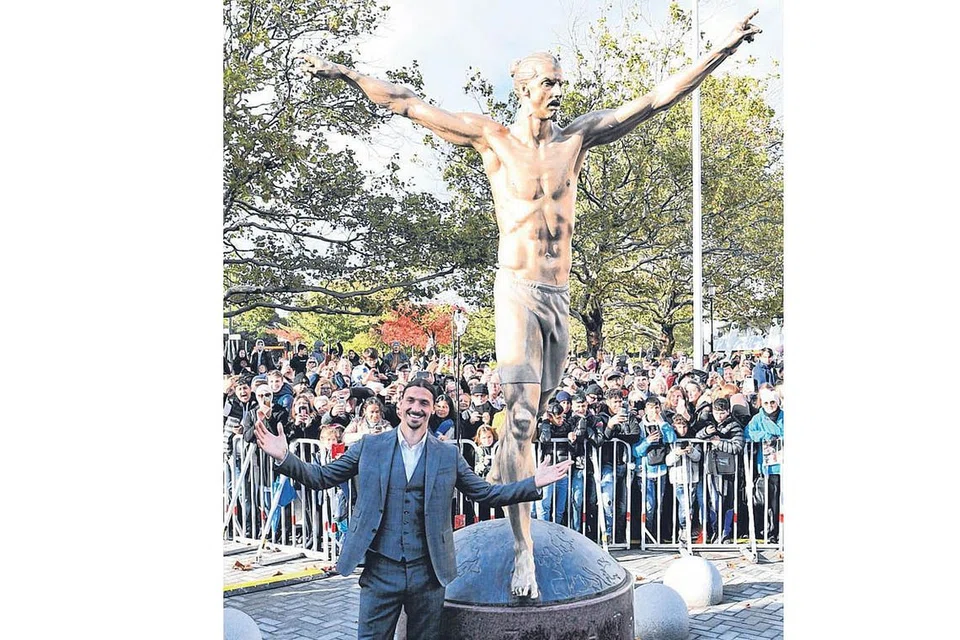 2.7 மீட்டர் உயரமும் 500 கிலோ எடையும் கொண்ட அந்தச் சிலையை ஸ்லாட்டனே நேற்று முன்தினம் திறந்து வைத்தார். ஐரோப்பாவின் முன்னணி லீக் பட்டங்களை 13 முறை வென்று உள்ள இவர், சுவீடனுக்காகவும் 116 போட்டிகளில் விளையாடி 62 கோல்களை அடித்துள்ளார். படம்: இபிஏ