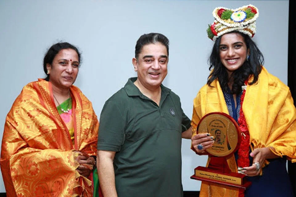 சென்னைக்கு சென்ற இந்திய பூப்பந்தாட்ட வீராங்கனை சிந்து ஆழ்வார்பேட்டையில், நடிகர் கமல்ஹாசனை நேரில் சந்தித்து வாழ்த்துப் பெற்றார். நாட்டுக்கு பெருமை சேர்த்த சிந்துவை வரவேற்பது தனது கடமை எனவும் அவரது திறமையை இளையவர்களுக்கு கற்றுத் தரும் வகையில், இலவச பேட்மிண்டன் பயிற்சி மையம் ஒன்றை சென்னையில் தொடங்க வேண்டும் எனவும் கமல் கூறினார். படம்: ஊடகம்