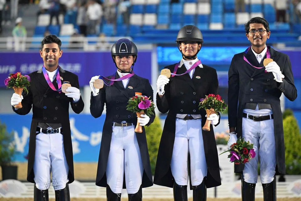 கடைசியாக 1982ஆம் ஆண்டு புதுடெல்லியில் நடைபெற்ற ஆசிய விளையாட்டுப் போட்டிகளில் குதிரையேற்றத்தில் இந்தியா தங்கம் வென்றிருந்தது. அதன்பிறகு இப்போதுதான் அது கைவசமாகியுள்ளது.